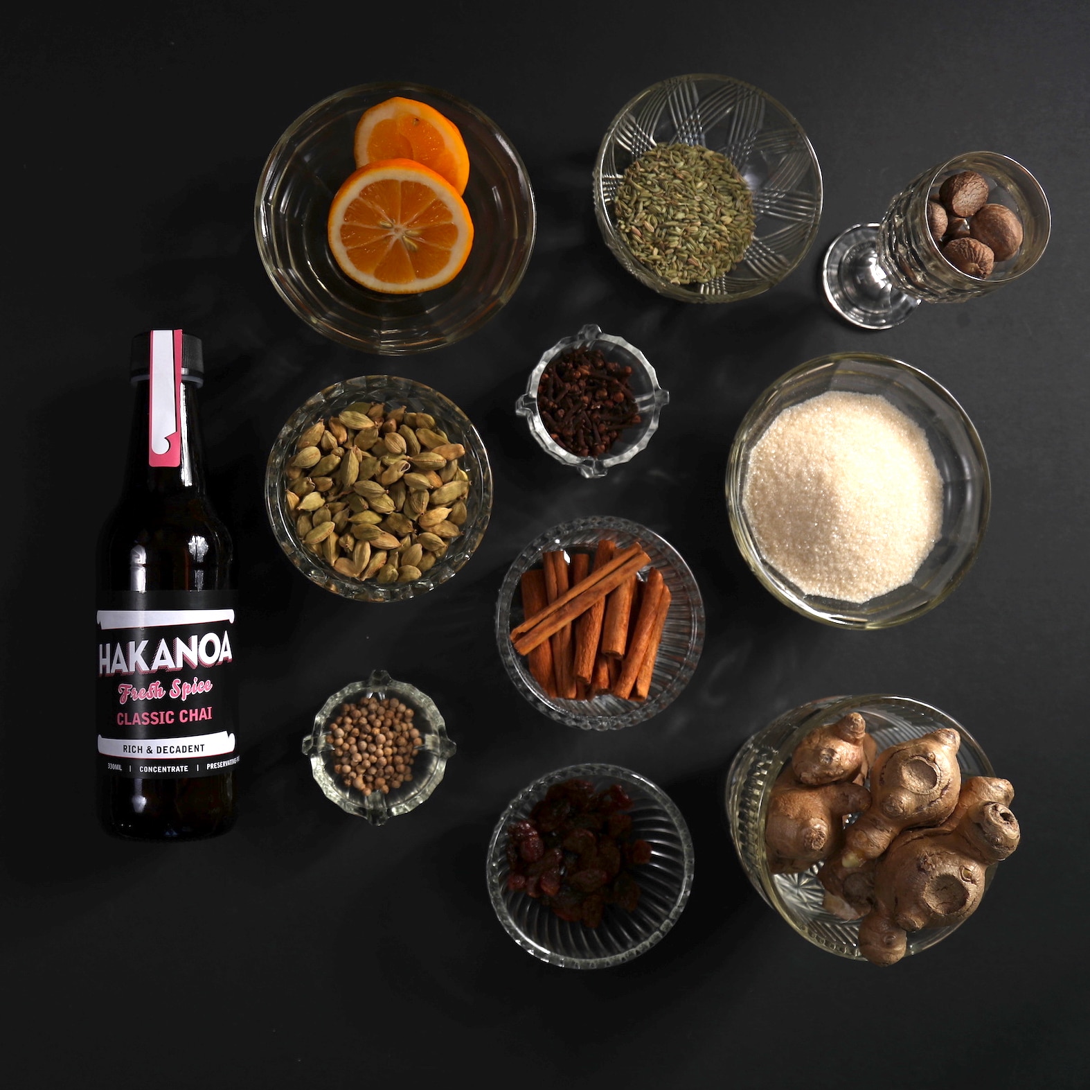 Hakanoa Chai Syrups are fresh spice and organic black tea concentrates designed to be mixed with hot milk to make a Chai Latte.
