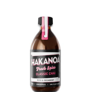 Hakanoa Chai Syrups are fresh spice and black tea concentrates designed to be mixed with hot textured velvety milk to make a Chai Latte. They work beautifully with plant-based milks or dairy milks. They can also be diluted with hot water to make a Chai Tea.